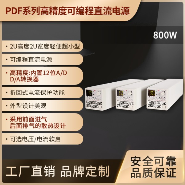 PDF系列寬范圍高精度可編程直流電源由高效芯片控制,具有高效能,高精度,高穩(wěn)定性等特性,配備多種輔助功能,體積輕巧,讓用戶使用更方便、可靠。 關(guān)于PDF系列400W,600W,800W,1000W,1200W,1600W,2000W,2400W具有同類產(chǎn)品*寬的電壓,電流及使用率,該產(chǎn)品大大提高了應(yīng)用范圍。以PDF400-30 為例,400W的功率,輸出值,在30V/40A 內(nèi)可調(diào),自動控制,電壓和電流的變化率,功率比達到三倍之多。電壓、電流設(shè)定組合可以實現(xiàn)4倍率的恒功率型電源,一臺機器可替代以往30V×13A/10V×40A/20V×20A等多種機型,減少您的重復(fù)投資。而對于PDF系列2400W功率則提供了全功率等級使用范圍。