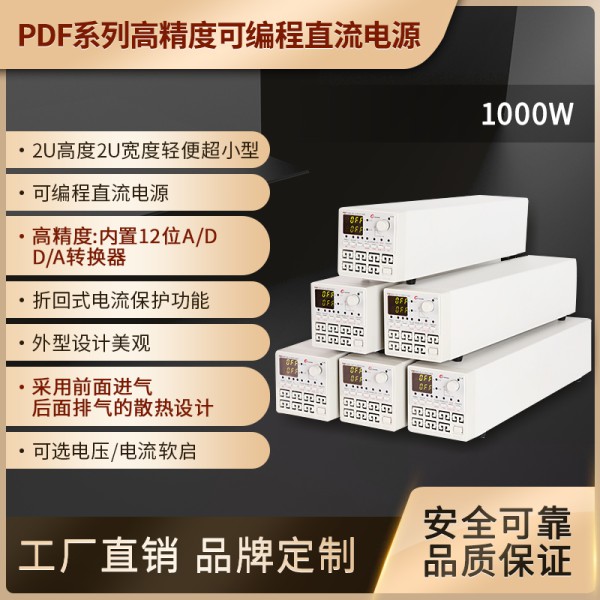 PDF系列寬范圍高精度可編程直流電源由高效芯片控制,具有高效能,高精度,高穩(wěn)定性等特性,配備多種輔助功能,體積輕巧,讓用戶使用更方便、可靠。 關(guān)于PDF系列400W,600W,800W,1000W,1200W,1600W,2000W,2400W具有同類產(chǎn)品*寬的電壓,電流及使用率,該產(chǎn)品大大提高了應用范圍。以PDF400-30 為例,400W的功率,輸出值,在30V/40A 內(nèi)可調(diào),自動控制,電壓和電流的變化率,功率比達到三倍之多。電壓、電流設(shè)定組合可以實現(xiàn)4倍率的恒功率型電源,一臺機器可替代以往30V×13A/10V×40A/20V×20A等多種機型,減少您的重復投資。而對于PDF系列2400W功率則提供了全功率等級使用范圍。