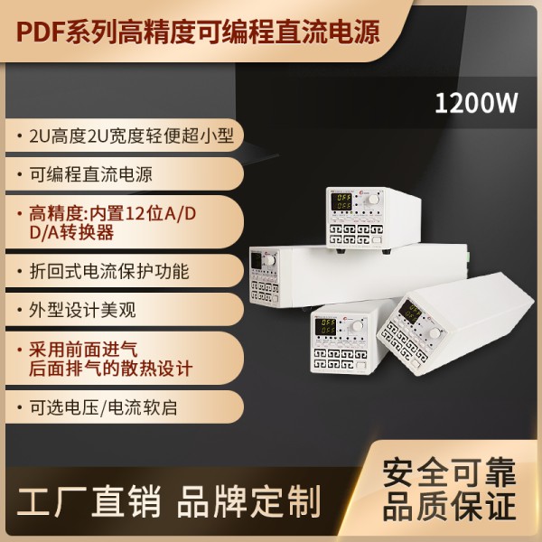 PDF系列寬范圍高精度可編程直流電源由高效芯片控制,具有高效能,高精度,高穩(wěn)定性等特性,配備多種輔助功能,體積輕巧,讓用戶使用更方便、可靠。 關(guān)于PDF系列400W,600W,800W,1000W,1200W,1600W,2000W,2400W具有同類產(chǎn)品*寬的電壓,電流及使用率,該產(chǎn)品大大提高了應(yīng)用范圍。以PDF400-30 為例,400W的功率,輸出值,在30V/40A 內(nèi)可調(diào),自動(dòng)控制,電壓和電流的變化率,功率比達(dá)到三倍之多。電壓、電流設(shè)定組合可以實(shí)現(xiàn)4倍率的恒功率型電源,一臺機(jī)器可替代以往30V×13A/10V×40A/20V×20A等多種機(jī)型,減少您的重復(fù)投資。而對于PDF系列2400W功率則提供了全功率等級使用范圍。